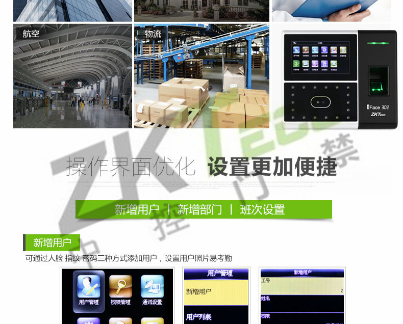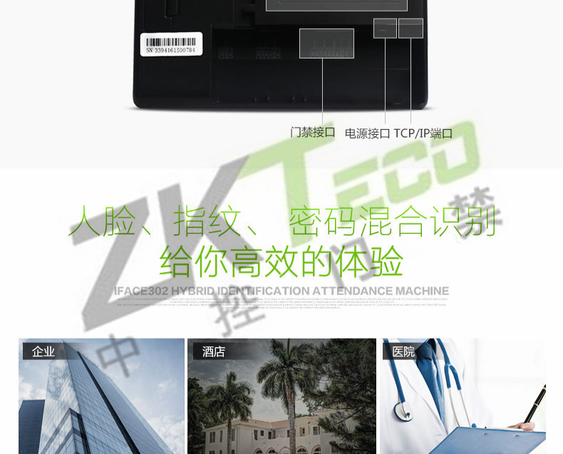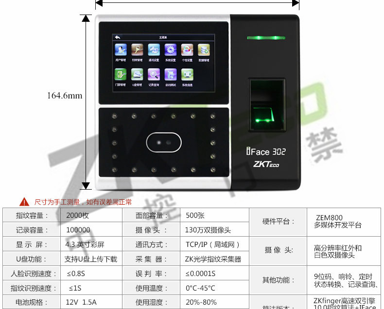 面部識別考勤機iface302 指紋打卡簽到設備