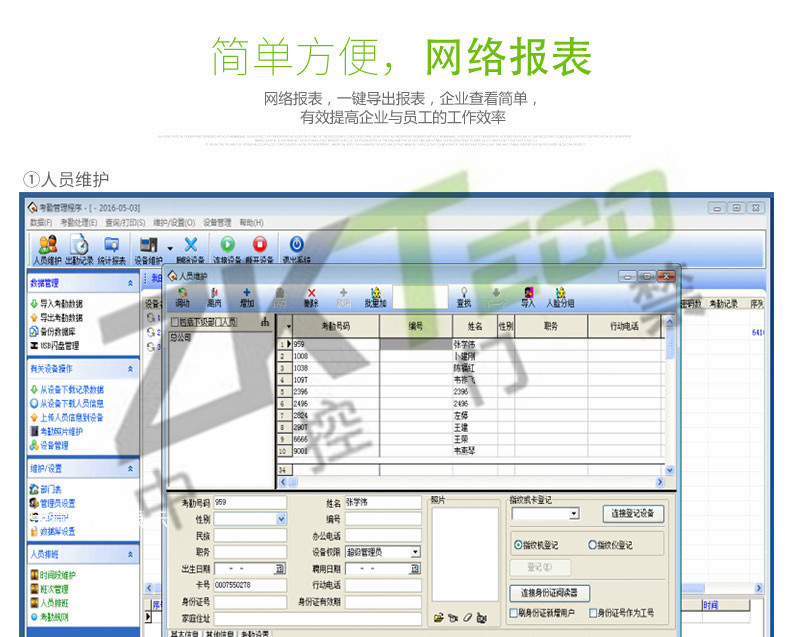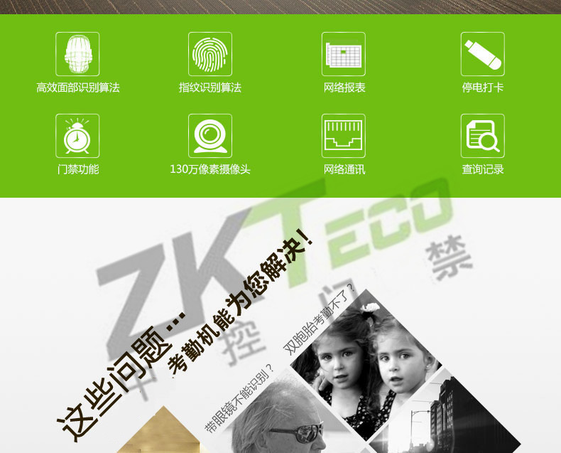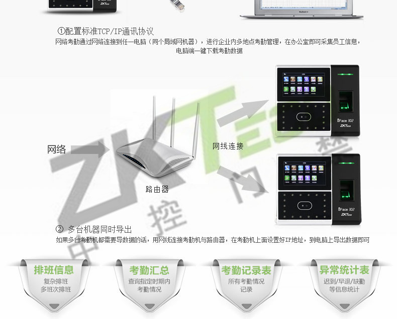 · 考勤功能: 外接定時響鈴、夏令時、記錄查詢、工作代碼、短消息